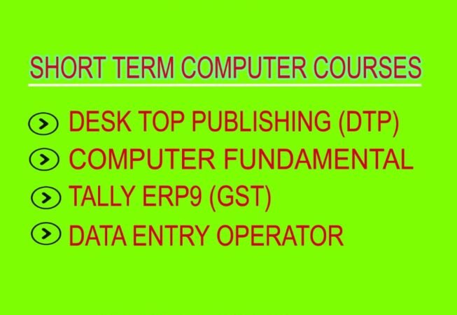 Short Term Computer classes are also offered for anyone who wishes to acquire computer skills. The training is held in the morning and evening hours to facilitate for free time usage of the computer lab. The training is held between 9 am and 4 pm on daily basis. The packages tough include basic typing skills. Familiarization with commands, Ms office, DTP,TallyERP9(GST)